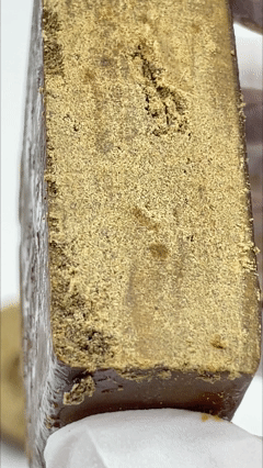 Es la forma tradicional que proviene del Magreb y a la que estamos más acostumbrados aquí en España. Este hachís se obtiene separando los tricomas de la flor previamente secada mediante mallas muy finas. Una vez filtrado, el polen o kief obtenido se prensa en caliente, transformándolo en un bloque compacto en lugar de dejarlo en forma de polvo suelto.